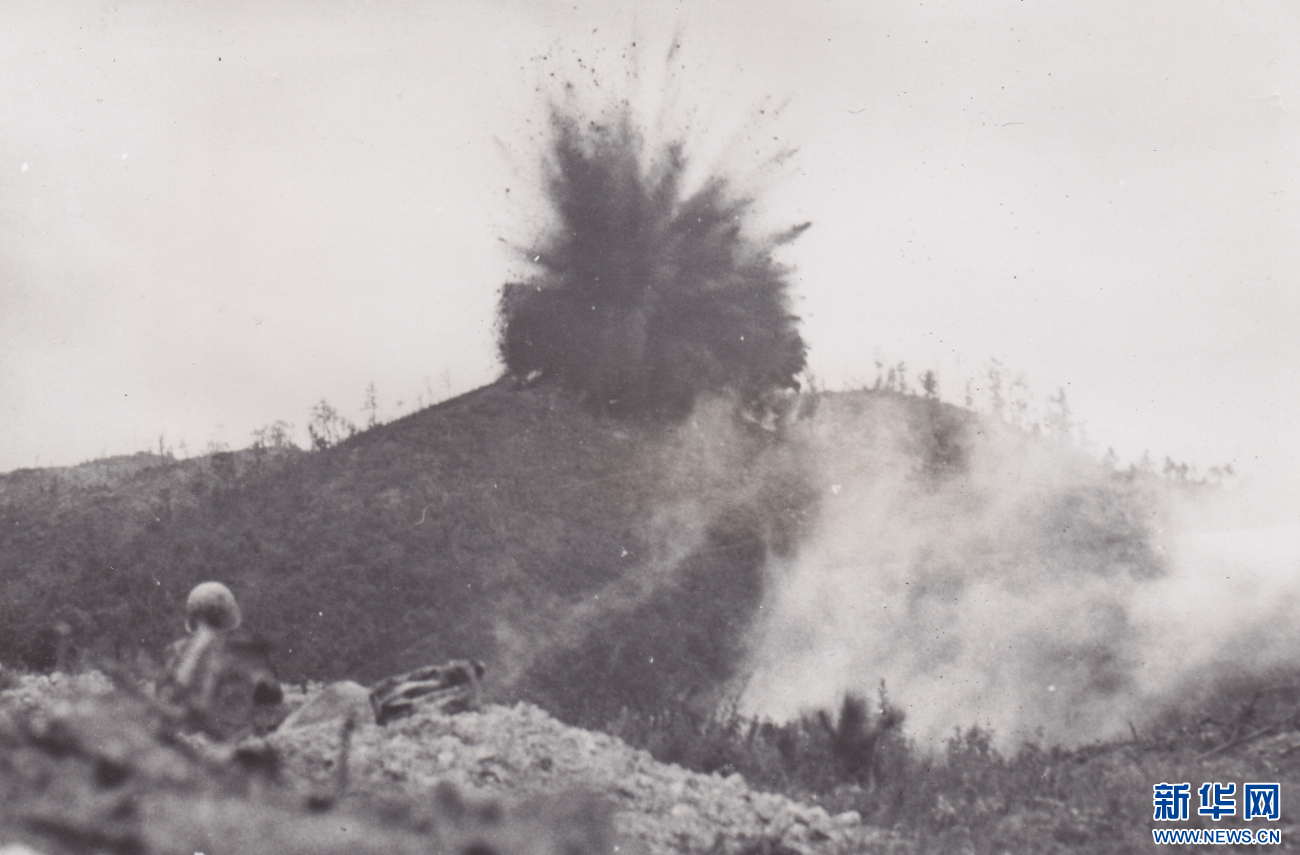 松山主峰子高地日軍地堡被中國軍隊爆破的瞬間。資料圖片(昆明市博物館供圖)