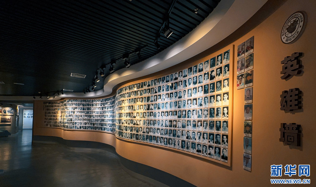 位于德宏州畹町鎮的南洋華僑機工回國抗日紀念館內陳列的南僑機工照片墻(10月31日攝)。新華網發 劉東 攝