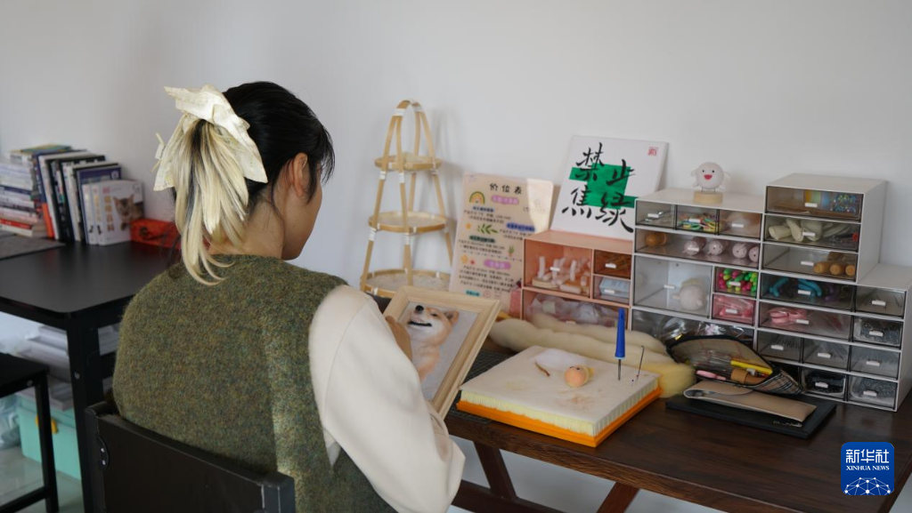 在云南曲靖楊外營村,咖啡館店主桓桓正在做寵物羊毛氈。新華社記者 荊昭延 攝