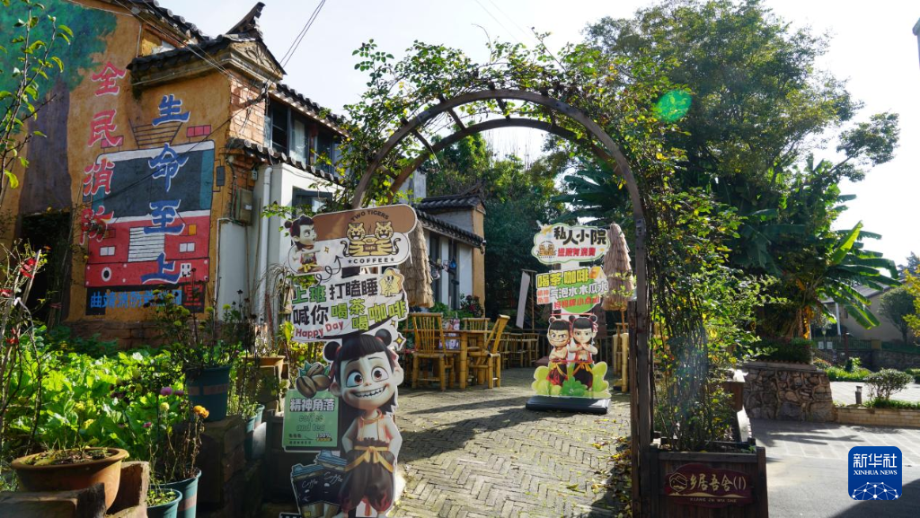云南曲靖土瓜沖村一家鄉村咖啡館門口。新華社記者 荊昭延 攝